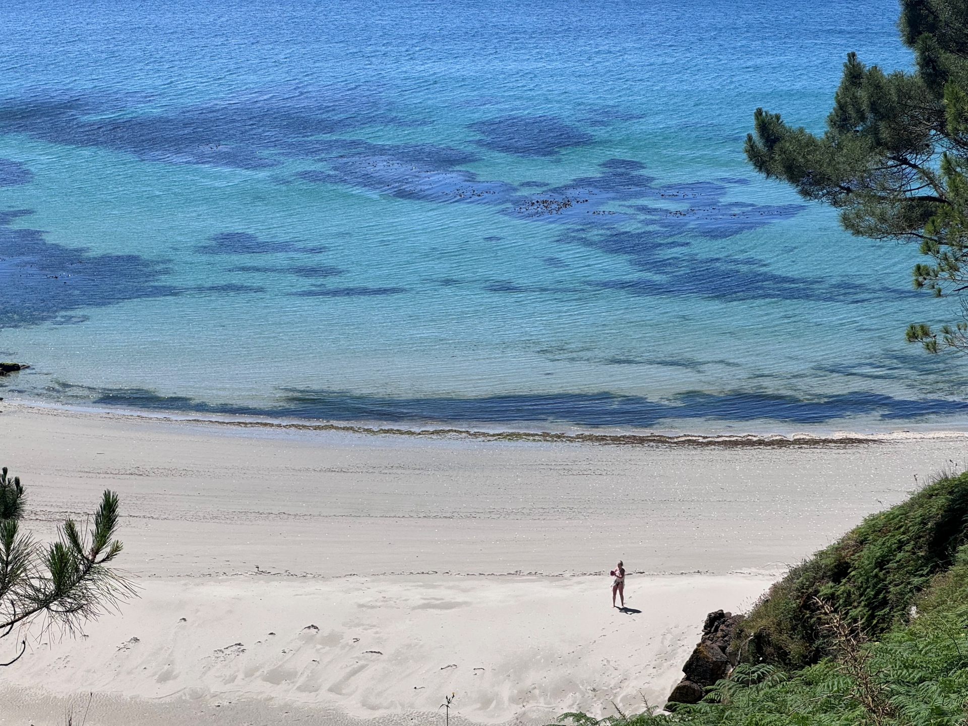 마을을 지나 또다시 산길로 접어들었다. 약 한 시간쯤 지난 오후 1시경 숲길이 끝나면서 푸른 바다가 보이고 반쯤 물속에 잠겨있는 거북이 모양을 한 아름다운 마을이 보인다. Cee의 풍경은 서막에 불과했었구나. 이게 진짜였어.