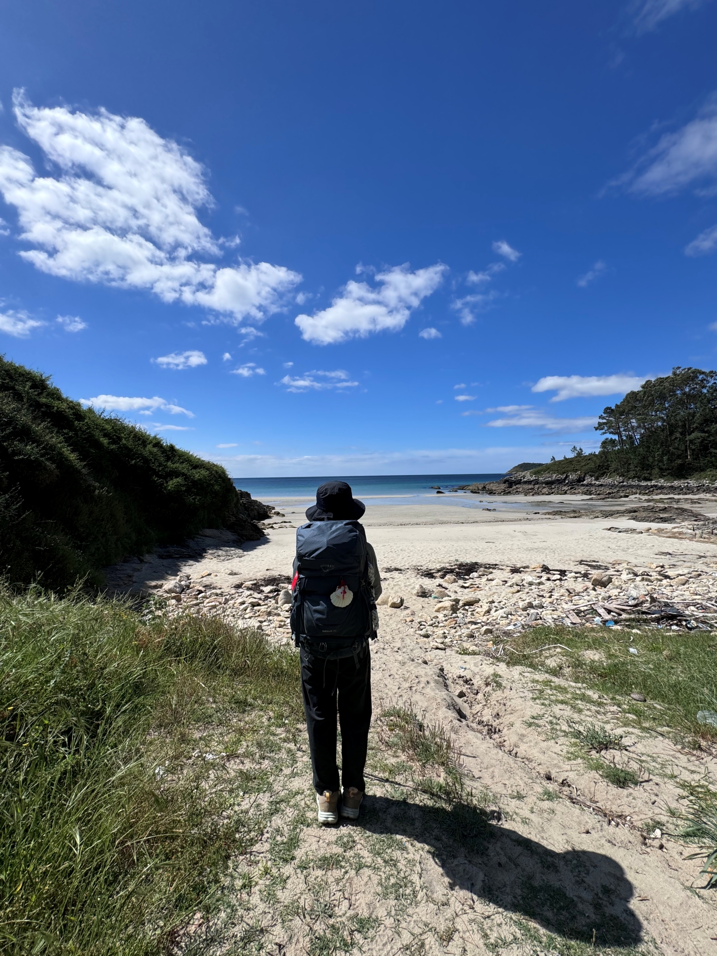 바닷가 마을을 향해 내려가는 길을 꽤나 가팔랐다. 피스테라에서 출발을 했는지 아님 한 바퀴 돌아 다시 산티아고로 가는 사람들인지 오늘은 어제보다 마주치는 사람들이 더 많은 듯하다. 그들은 우리와 반대로 꽤나 힘들게 오르막길을 오르고 있음에 부엔카미노를 성실하게 외쳐주었다.