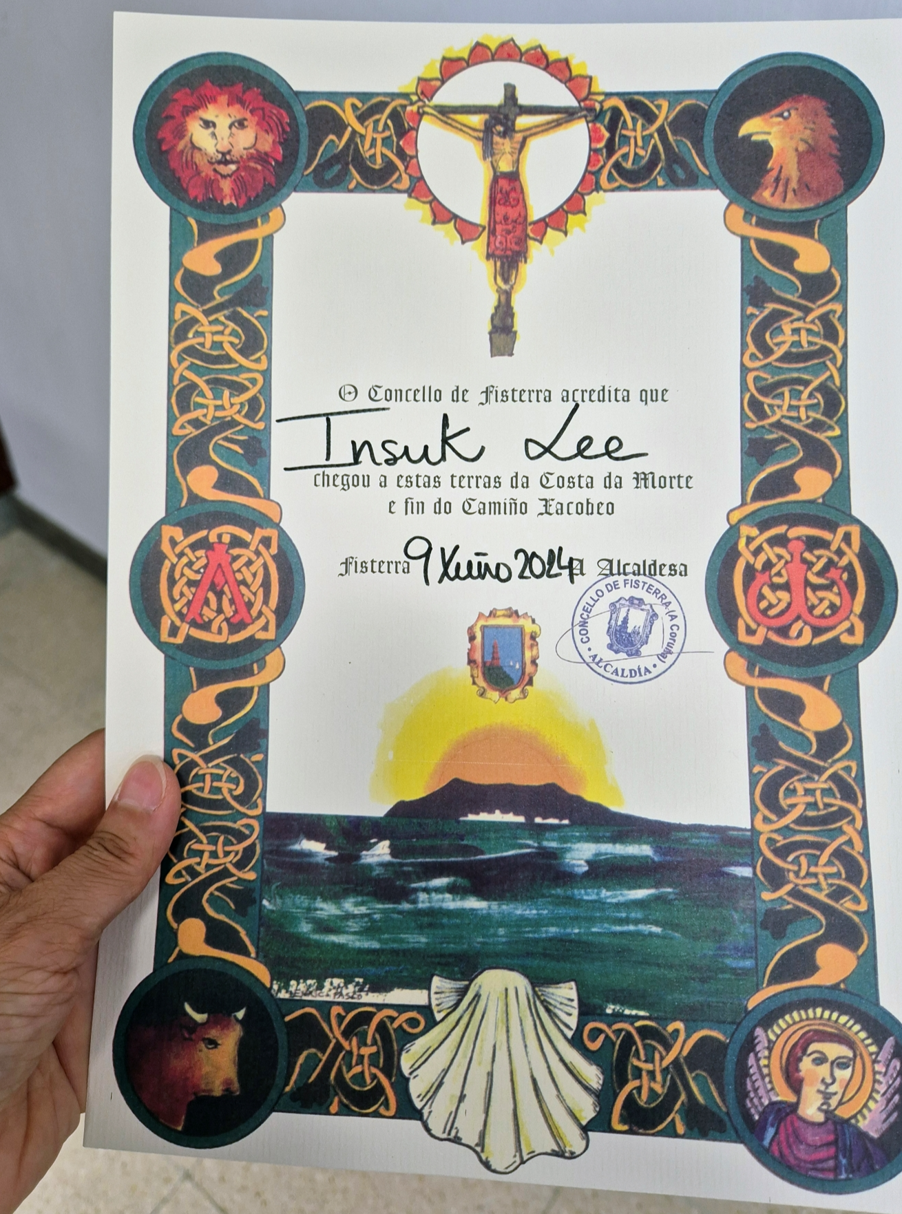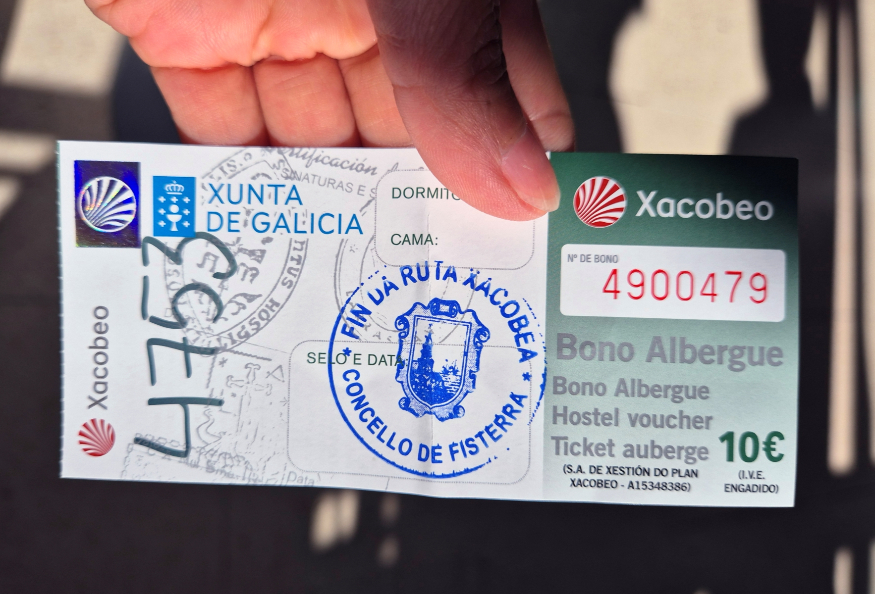 몇 가지 주의사항과 함께 침대를 배정받고, 산티아고 데 콤포스텔라 이후 이어지는 피스테라 코스에 대한 완주증도 받았다.