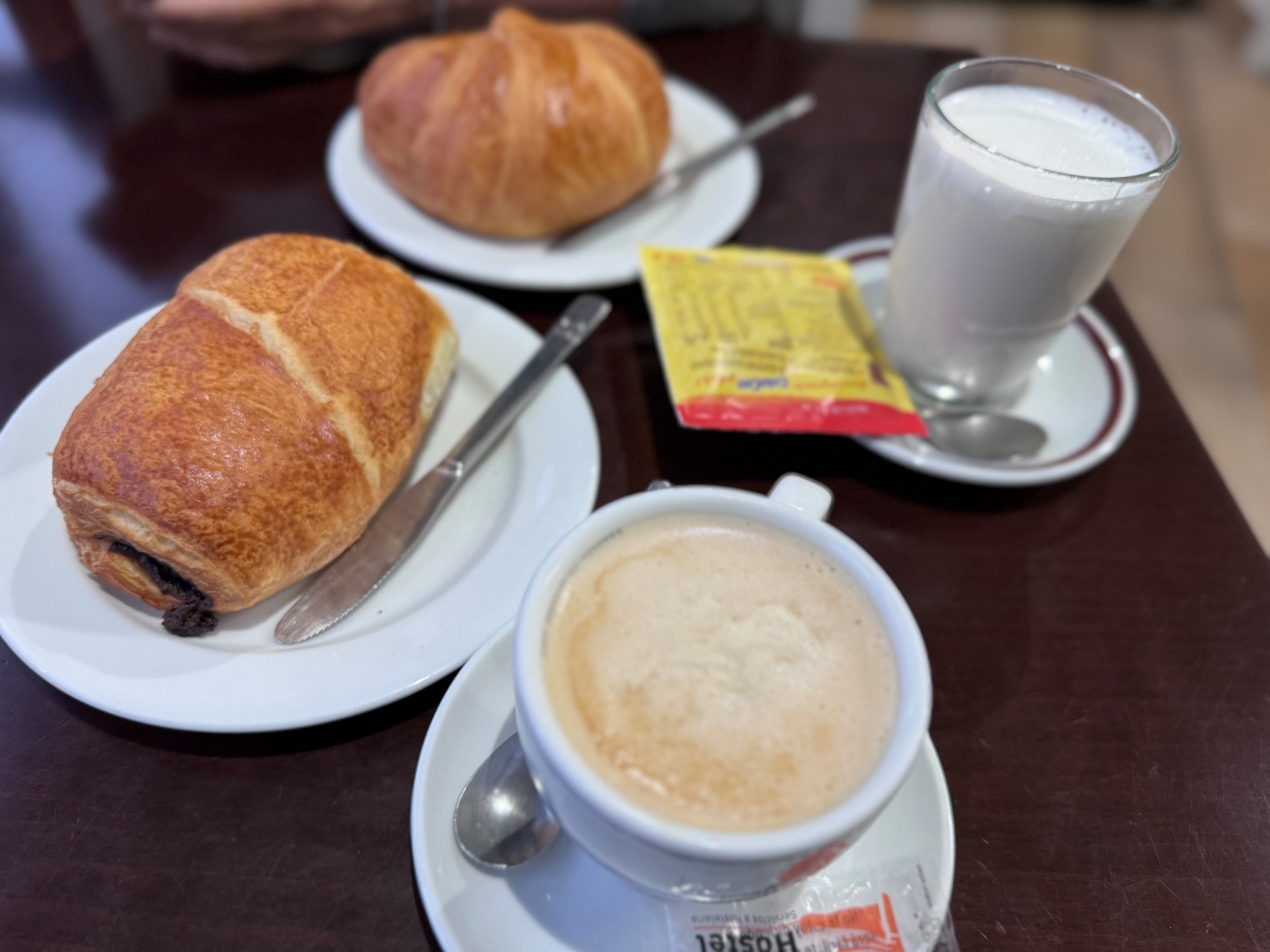 출발한 지 한 시간이 채 되지 않은 시간에 빠를 만나 빵과 우유, 커피로 아침식사를 했다. 같은 테이블에 프랑스부부가 함께 앉아 휴지로 싼 체리를 내놓으며 같이 먹자 한다. 예의상 한 개씩만 먹으며 웃음으로 답했다. 피스테라로 가냐 물으셔서 그렇다고 답했다. 노부부가 건강하게 함께 걷는 모습은 참 보기 좋다. 게다가 사로에게 참 다정다감한 모습은 우리도 배워야 할 점이 아닌가 싶다. 화장실 앞에서 만난 여자는 한국인 여자 같은데 그녀도 말을 안 하고 나도 말을 안 하고, 우린 좀 묵뚝뚝하다.